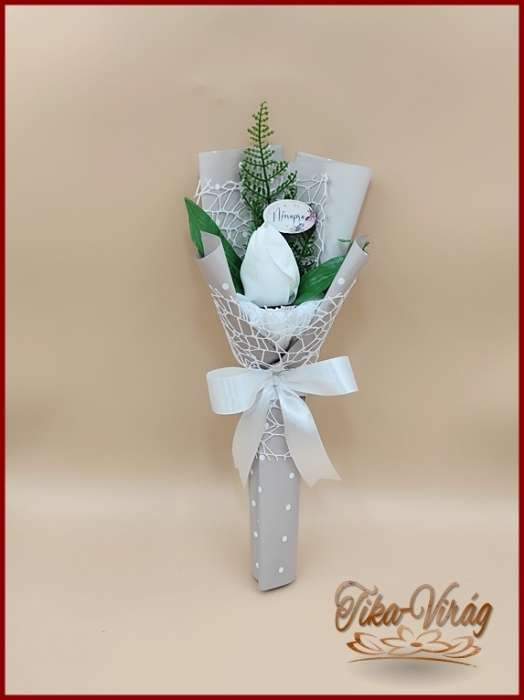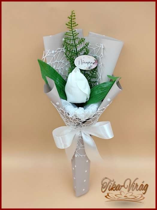Fehér színű szappan-tulipán csokor Nőnapi táblával 095138.