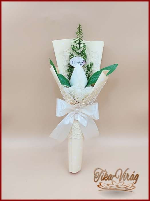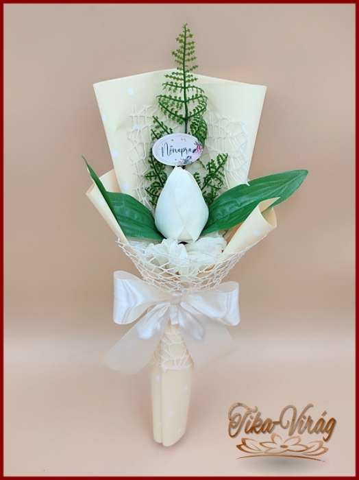 Ekrü színű szappan-tulipán csokor Nőnapi táblával 095311.