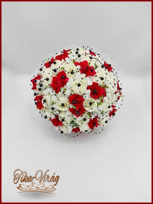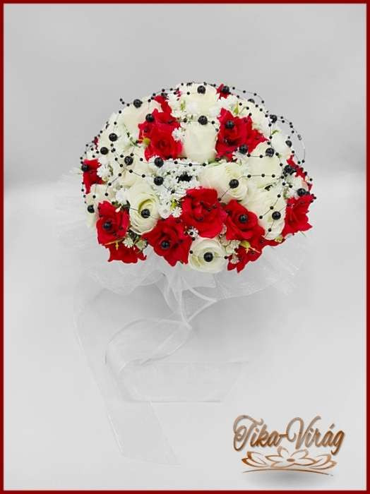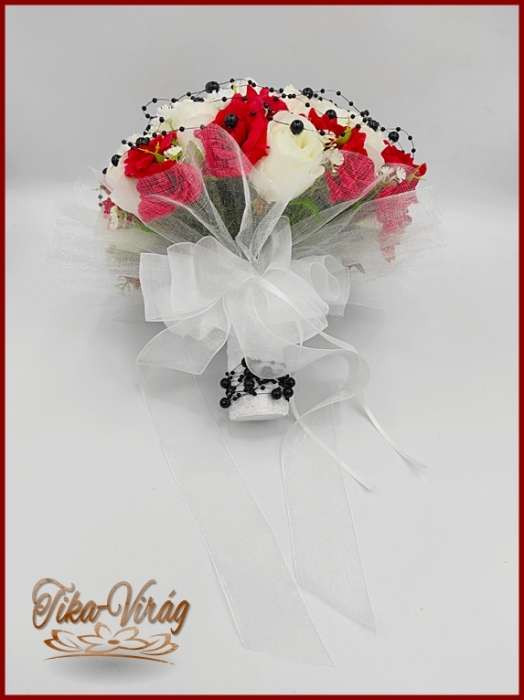 25 szálas fehér-piros rózsás - fekete díszítésű örök-csokor 103627.