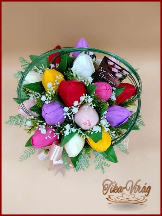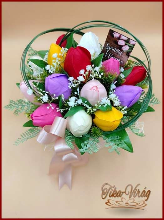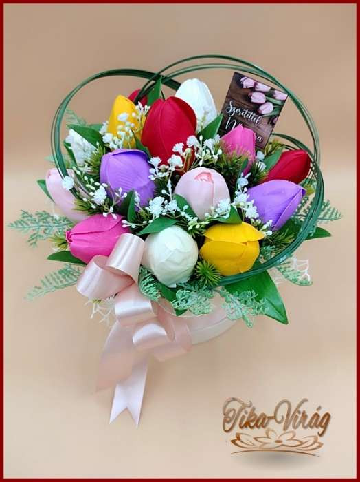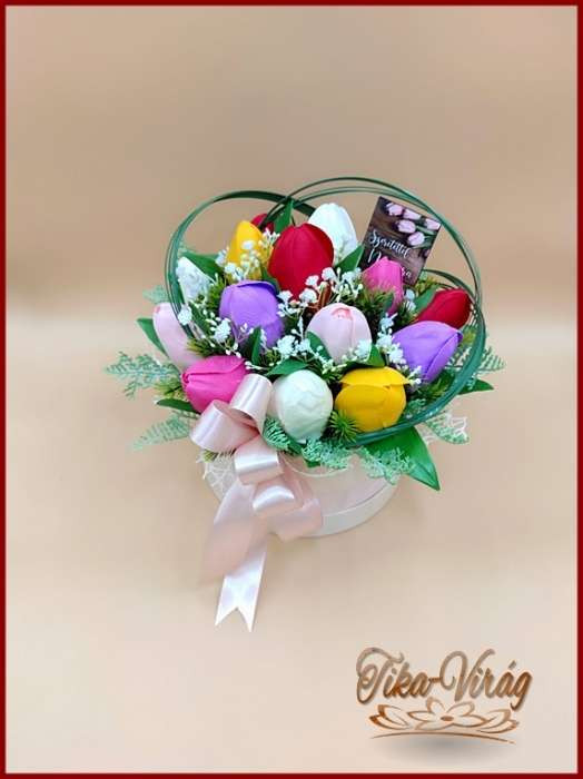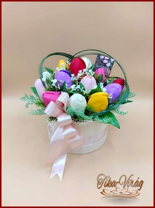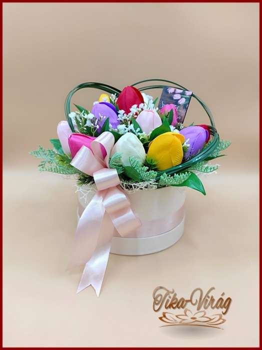 16 szál vegyes tulipánokból áll szappanvirág-box 104702.