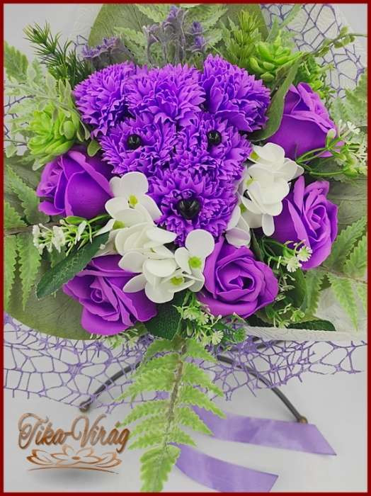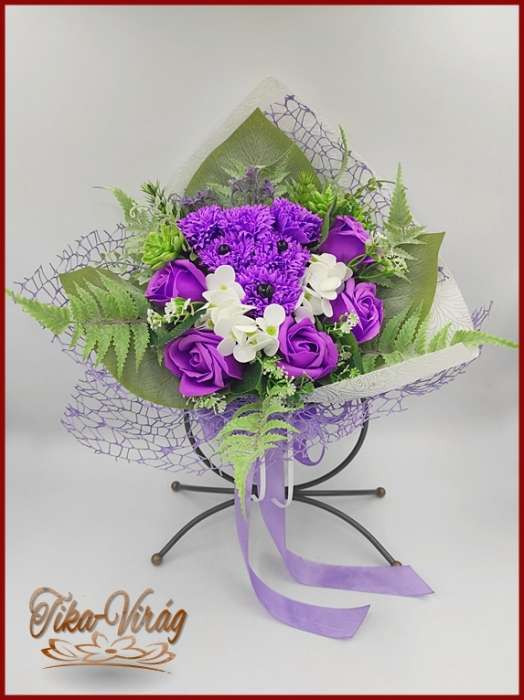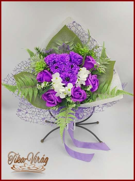 Kutyus illatos szappan-virág csokorba kötve lila színű 135759.