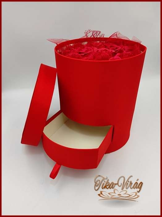 Piros Henger Alakú Meglepetés Doboz 12 Szál Illatos Piros Szappanrózsával (153250)
