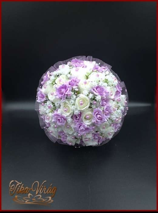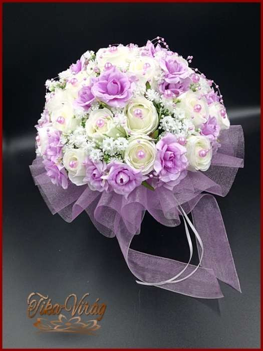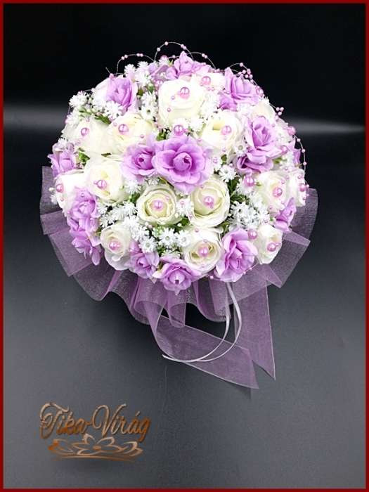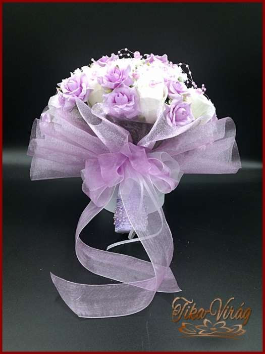 25 szálas fehér rózsás-lila rózsával díszített örök-csokor 162846.