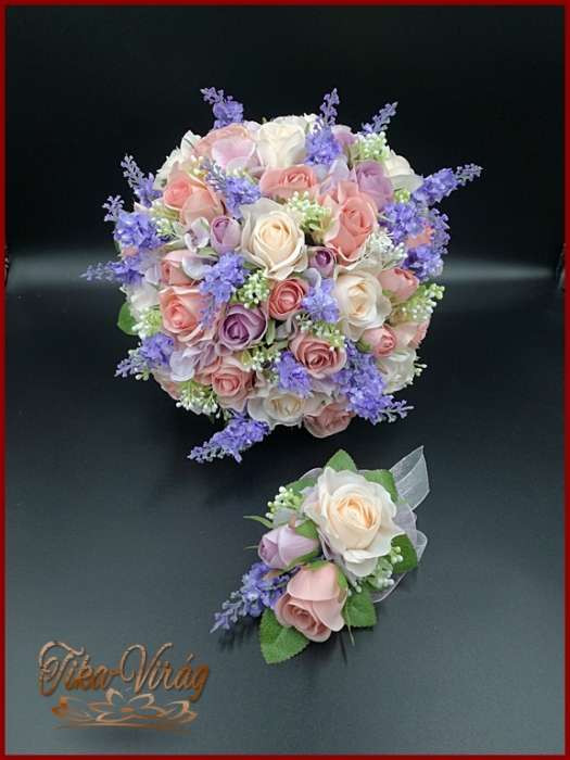 LEVENDULÁS-RÓZSÁS ANTIK HATÁSÚ, VINTAGE STÍLUSÚ ÖRÖK-CSOKOR+kitűzővel