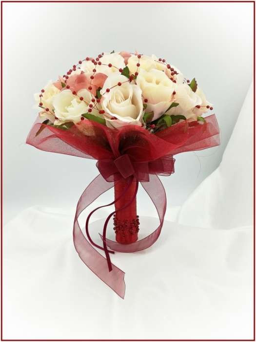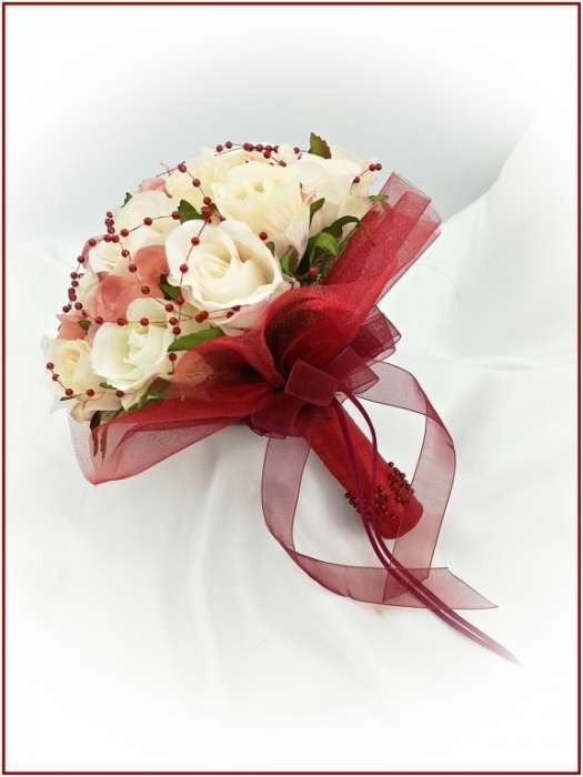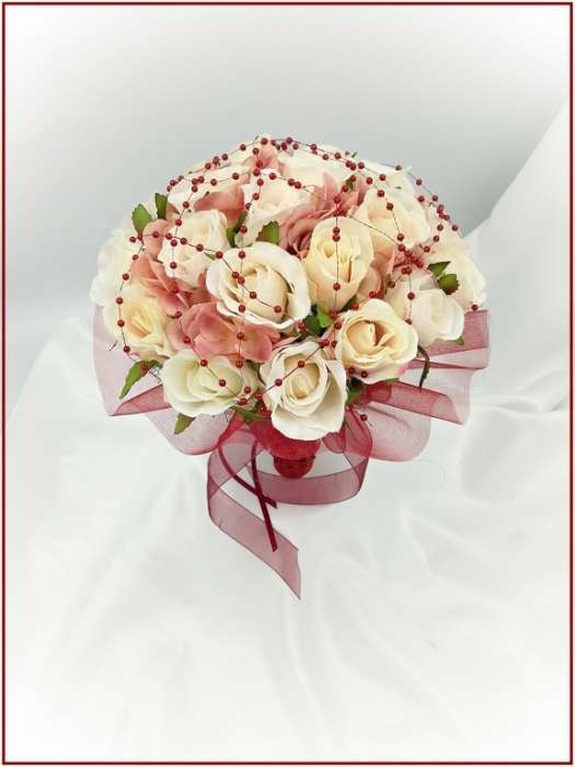Mályvás-pasztell Örök-csokor 24 virágos burgundi díszítéssel 170535_1.