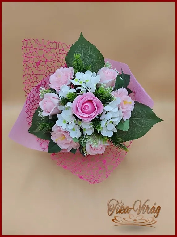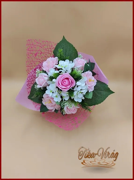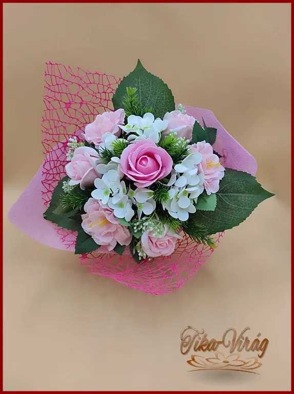 Egy különleges vegyes csokor szappan rózsa, szegfű és hortenzia virágokból. Igen intenzív illatú! Nem hervad, tartós.