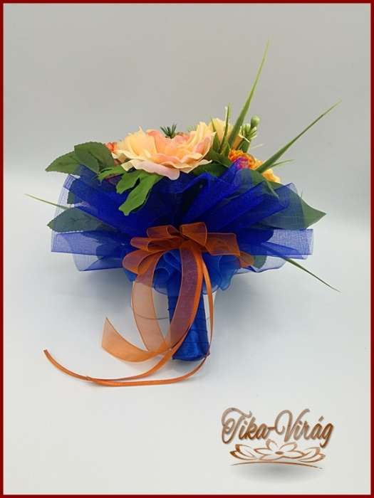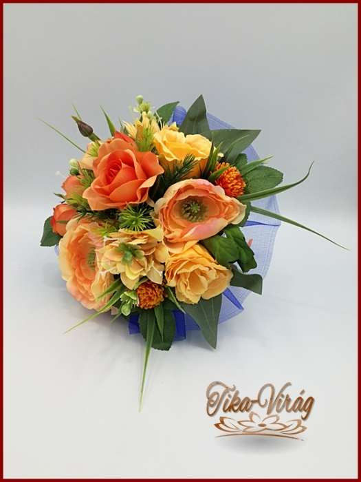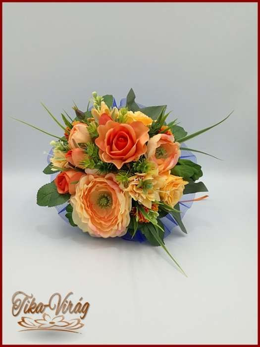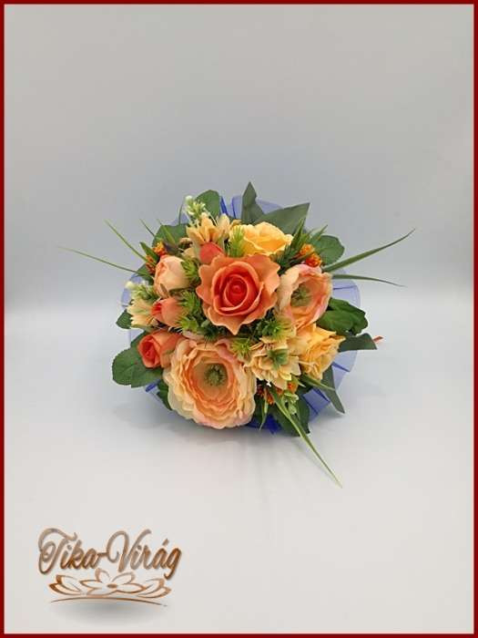 Narancsos rózsa-örök csokor, szellőrózsával és liziantusszal 180010.