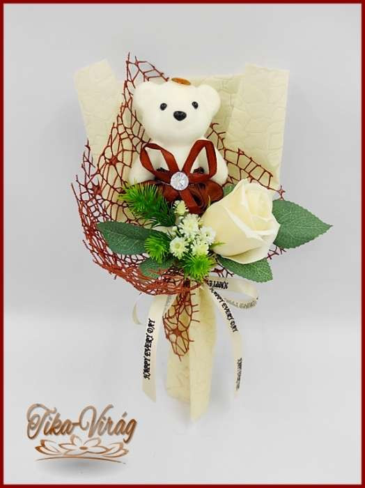 Ekrü szappan rózsa-barna macival 182823. Mérete: 25x15cm Ajánlom Nőnapra, de szép ajándék lehet ballagásra, születésnapra, névnapra, vagy bármely köszöntésre.