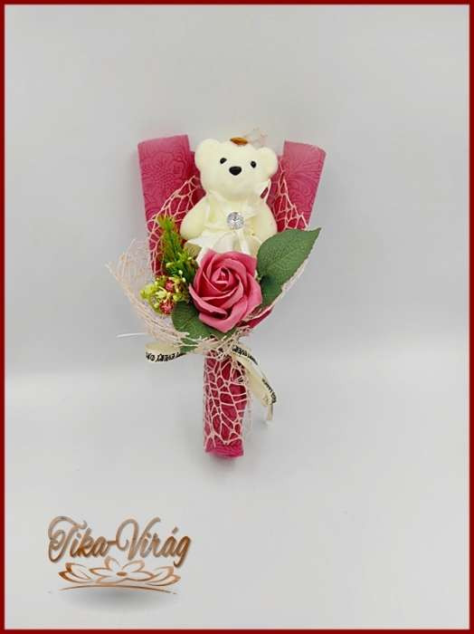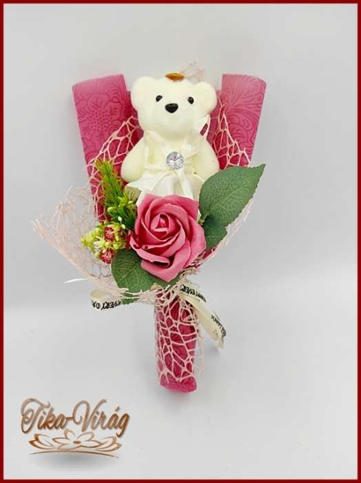 Mályva szappan rózsa-ekrü macival 182929. Mérete: 25x15cm Ajánlom Nőnapra, de szép ajándék lehet ballagásra, születésnapra, névnapra, vagy bármely köszöntésre.