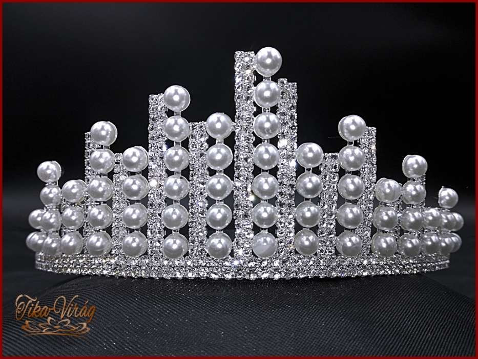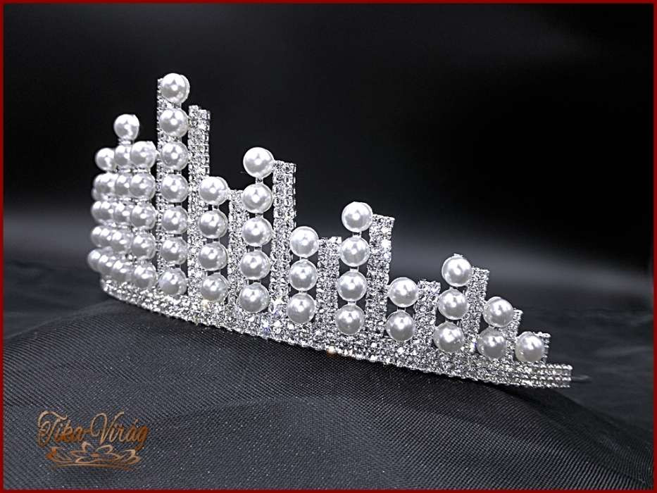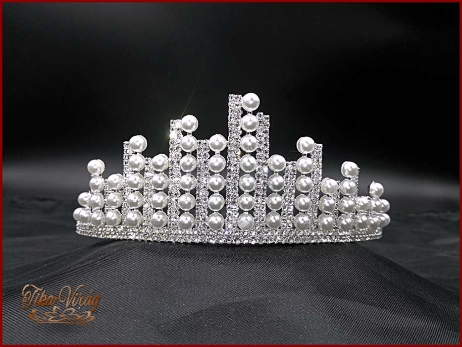 Különleges kristály-strasszokból és fehér gyönggyel díszített Tiara.