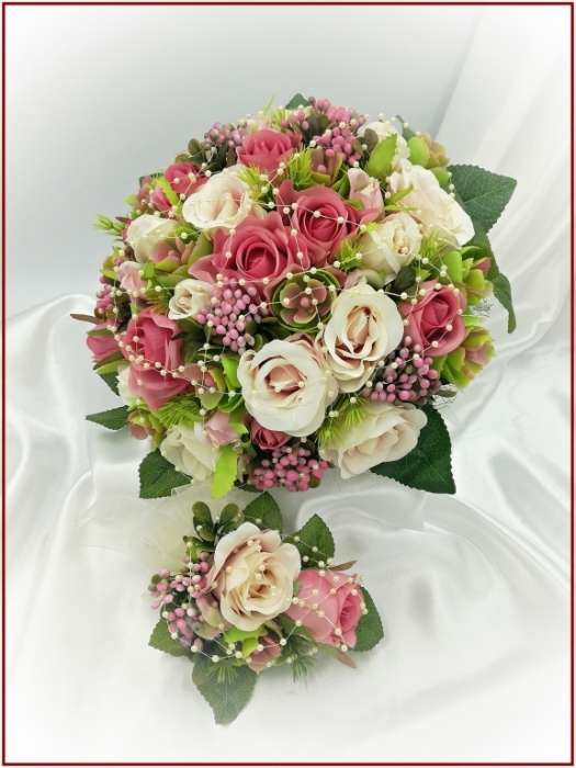 Antik-rózsaszínű-rózsákból álló örök-csokor + kitűzővel 191915_1.