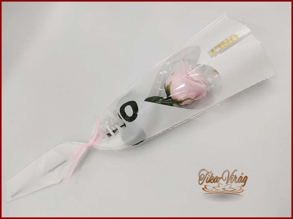 Rózsaszín színű szappanrózsa díszcsomagolásban