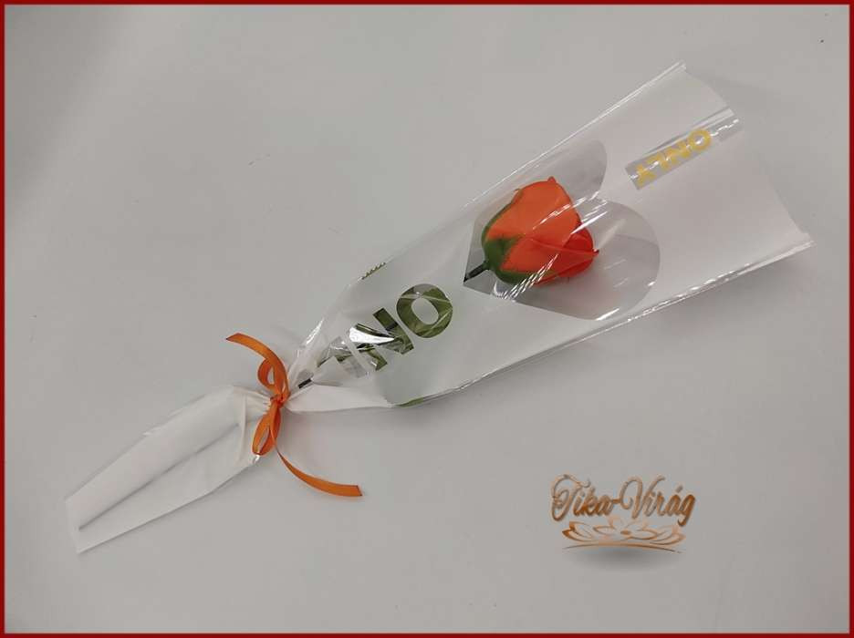 Narancssárga színű szappanrózsa díszcsomagolásban