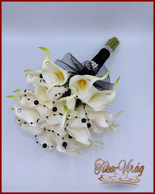 24 virágos Fehér Kála örök-csokor fekete díszítéssel 195440.