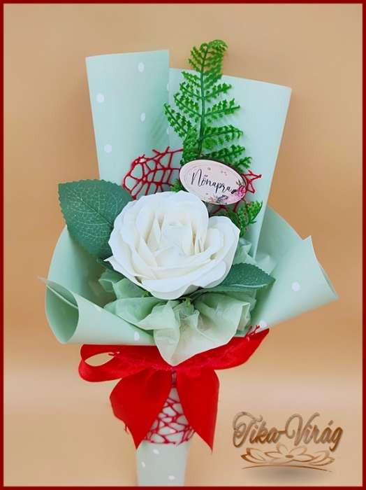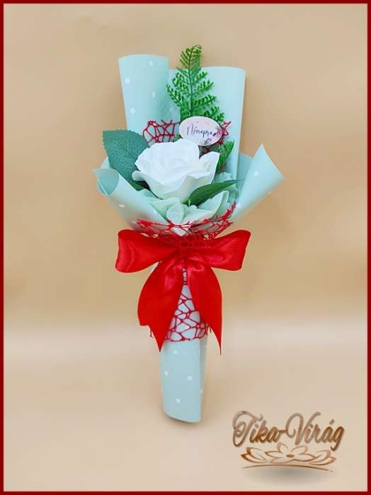 Fehér nagy szappanrózsa táblácskával díszcsomagolásban 211656.