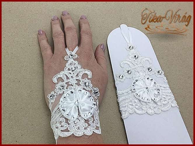Elegáns rövid csipke kesztyű menyasszonyoknak 7357-10.