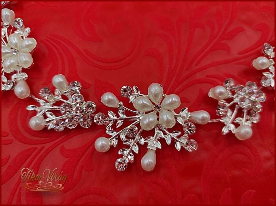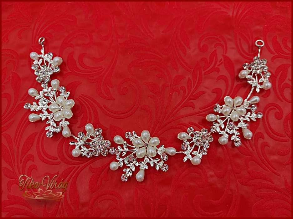 Strasszos hajdísz fehér gyöngyökkel díszítve BENHQ-211201.