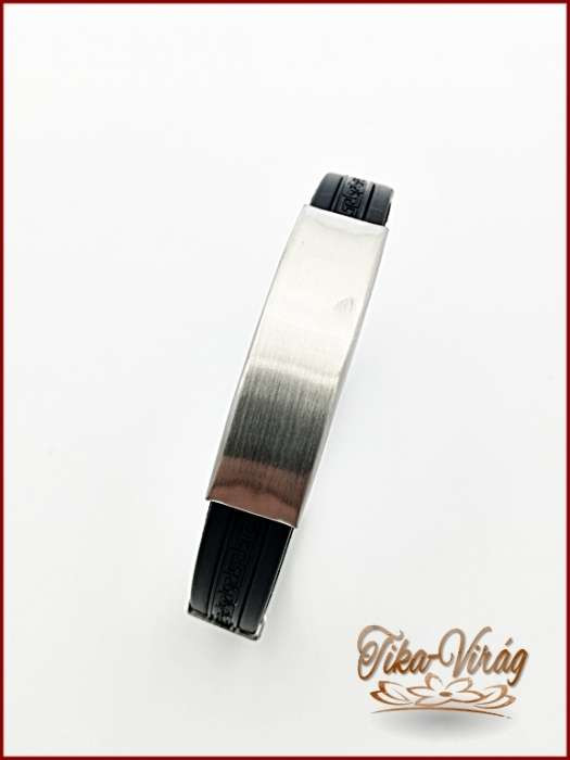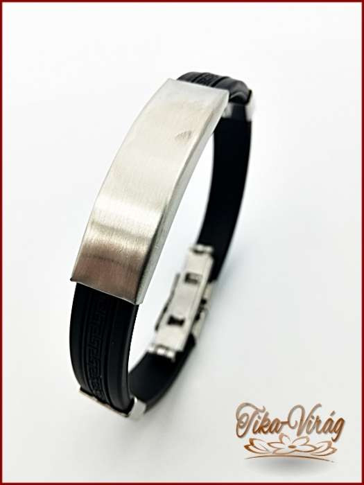 Fekete-fekete színű Görög mintás gravírozható kaucsuk karkötő