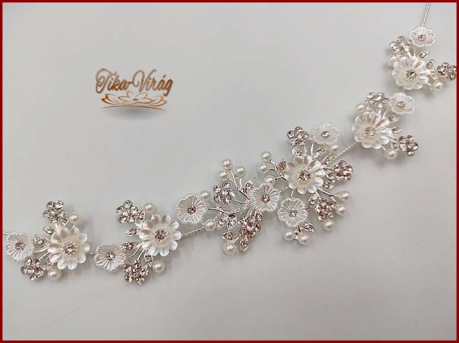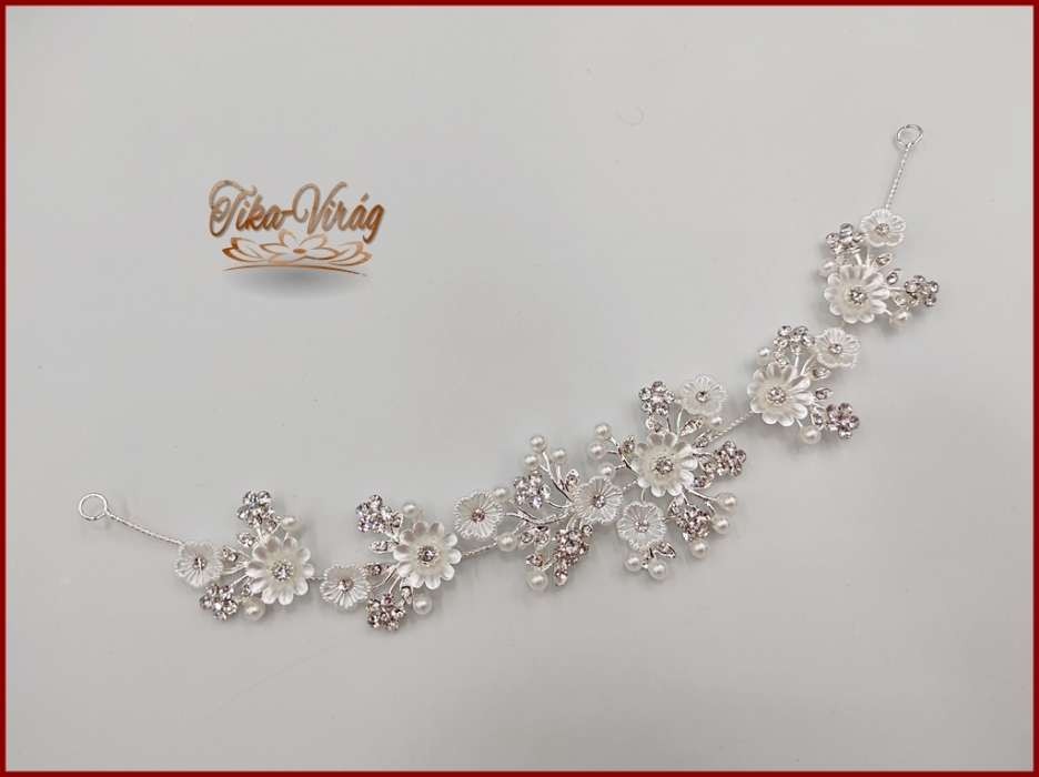 Fehér virágokkal díszített strasszos hajdísz, hajdrót CARCI-191008.v.