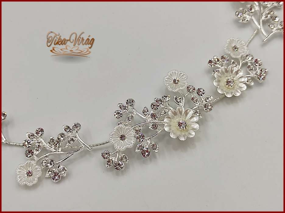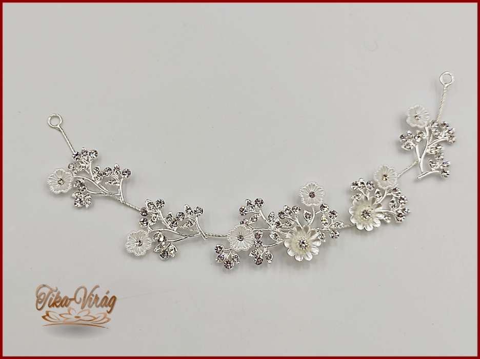 Fehér virágokkal díszített strasszos hajdísz, hajdrót CARCI-20106.v.