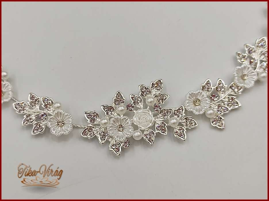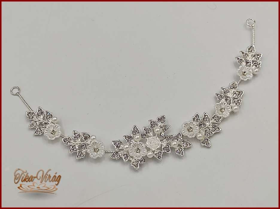 Fehér virágokkal díszített strasszos hajdísz, hajdrót CARCI-20107.v.