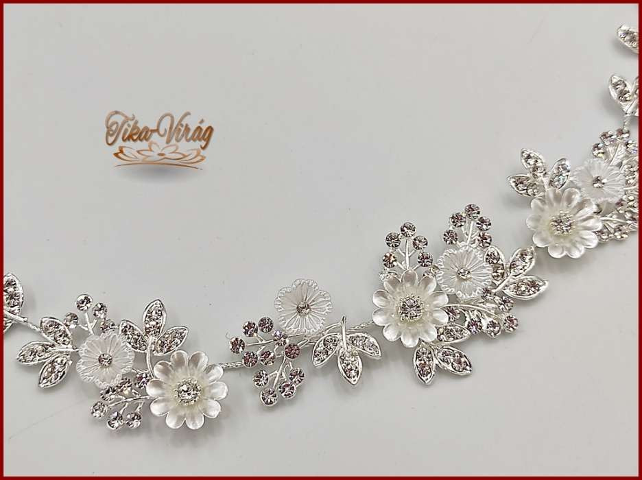 Fehér virágokkal díszített strasszos hajdísz, hajdrót CARCI-20108.v.