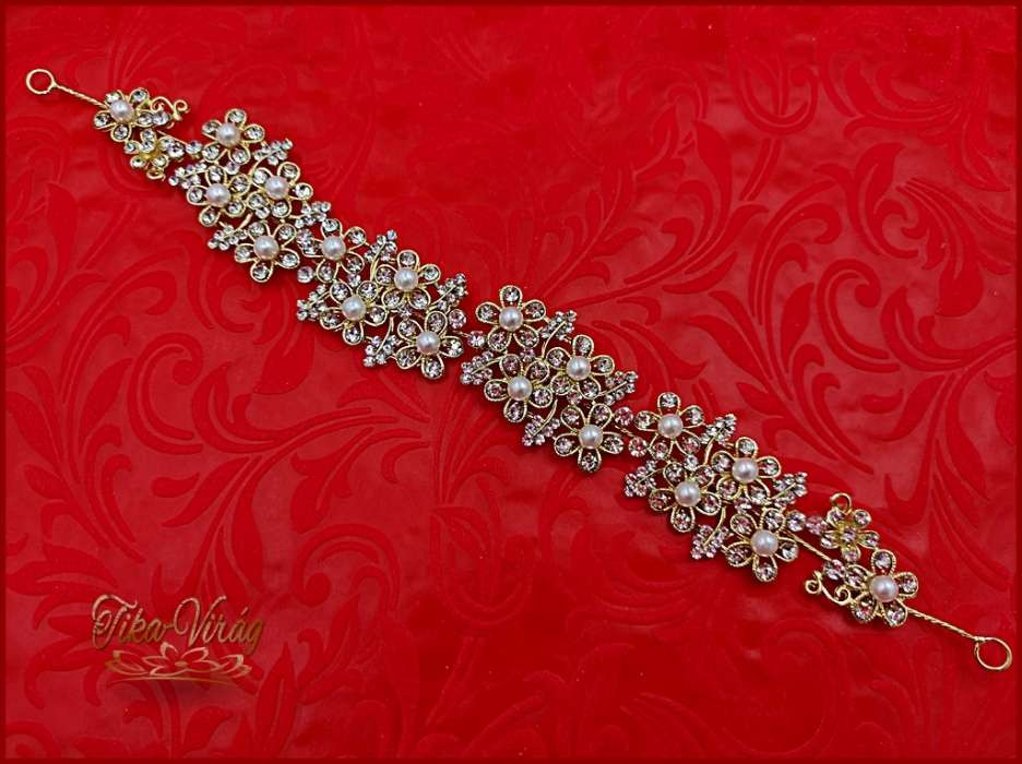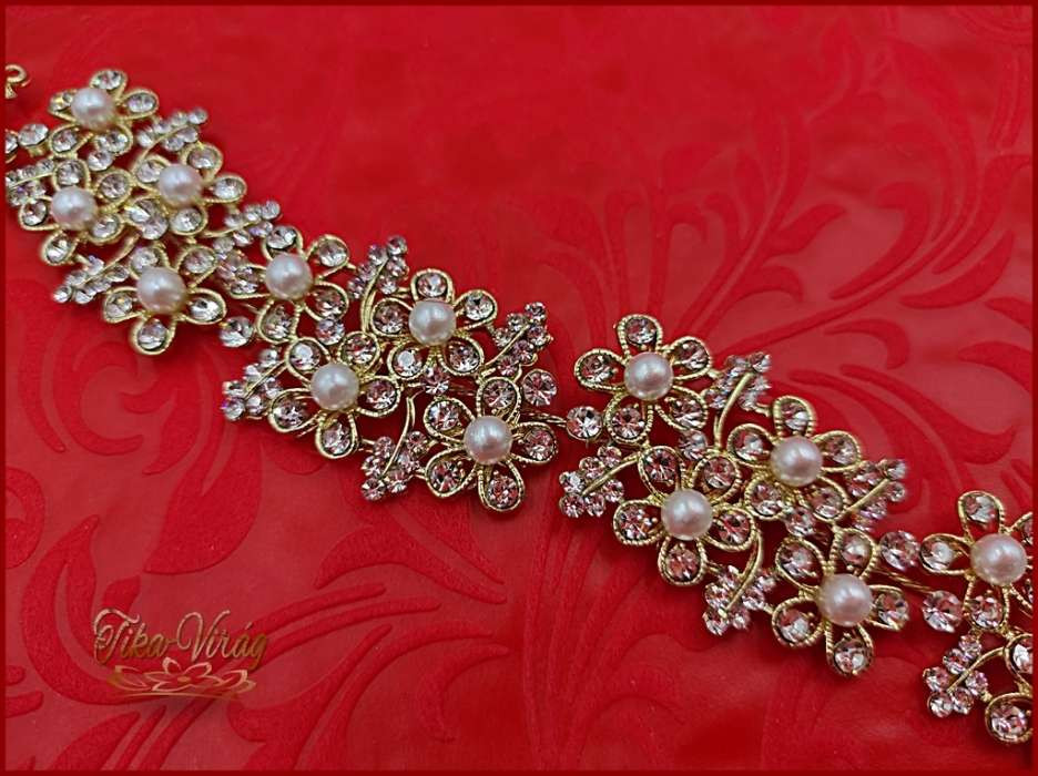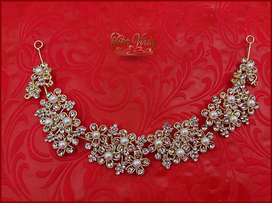 Strasszos hajdísz aranyszínű fehér gyöngyökkel díszítve CARCI-21705.