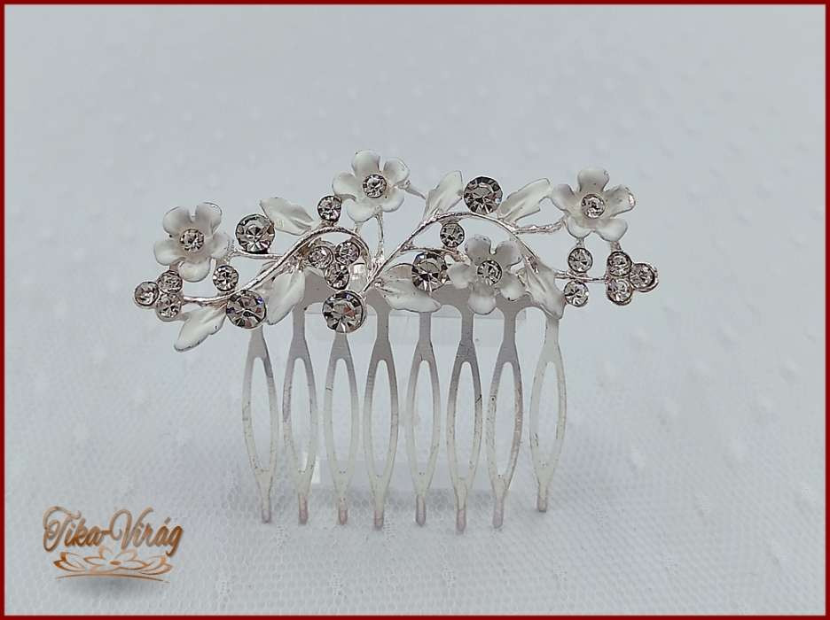 VIRÁGOKKAL DÍSZÍTETT STRASSZOS FEHÉR KONTYTŰ 7 CM X 2 CM CARCI-22602.F.