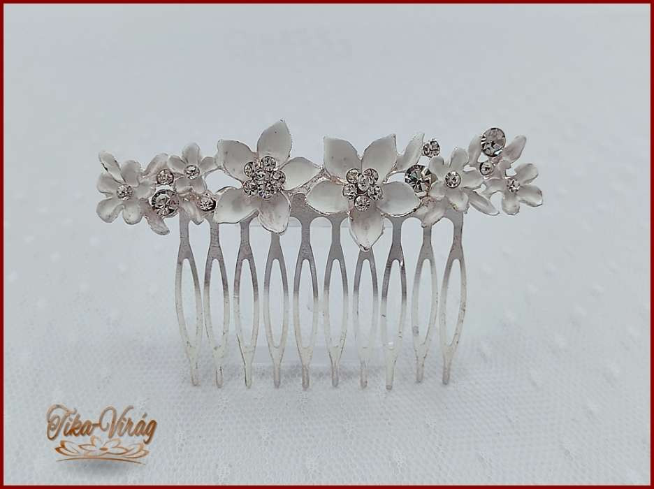 VIRÁGOKKAL DÍSZÍTETT STRASSZOS FEHÉR KONTYTŰ 8 CM X 2 CM CARCI-22603.F.