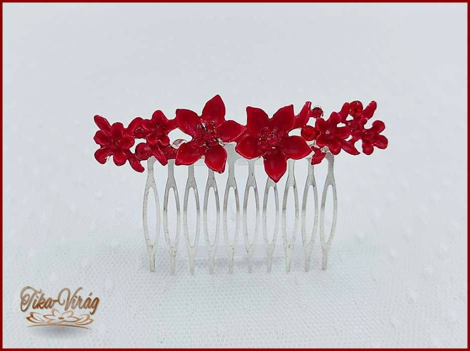 VIRÁGOKKAL DÍSZÍTETT STRASSZOS PIROS KONTYTŰ 8 CM X 2 CM CARCI-22603.P.