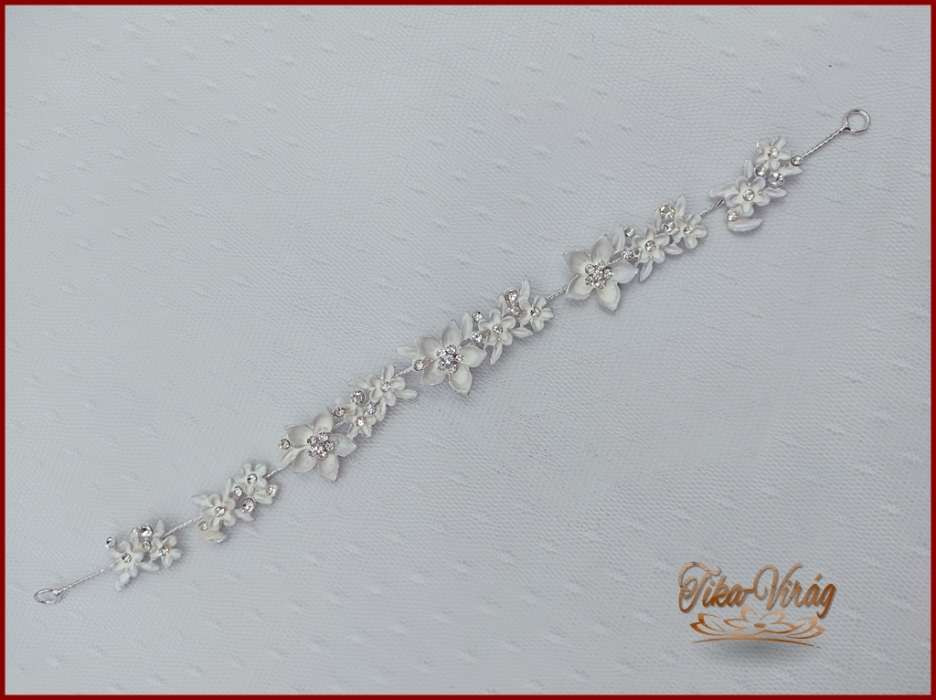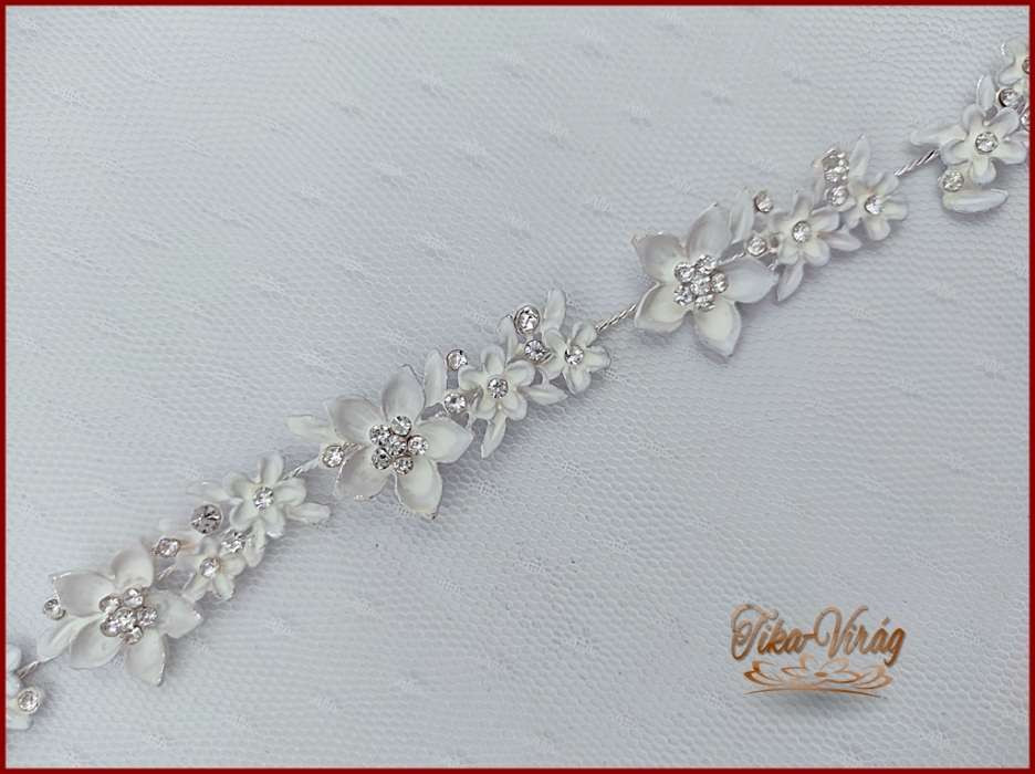 VIRÁGOKKAL DÍSZÍTETT STRASSZOS FEHÉR HAJDÍSZ 28X2 cm CARCI-22612.F.