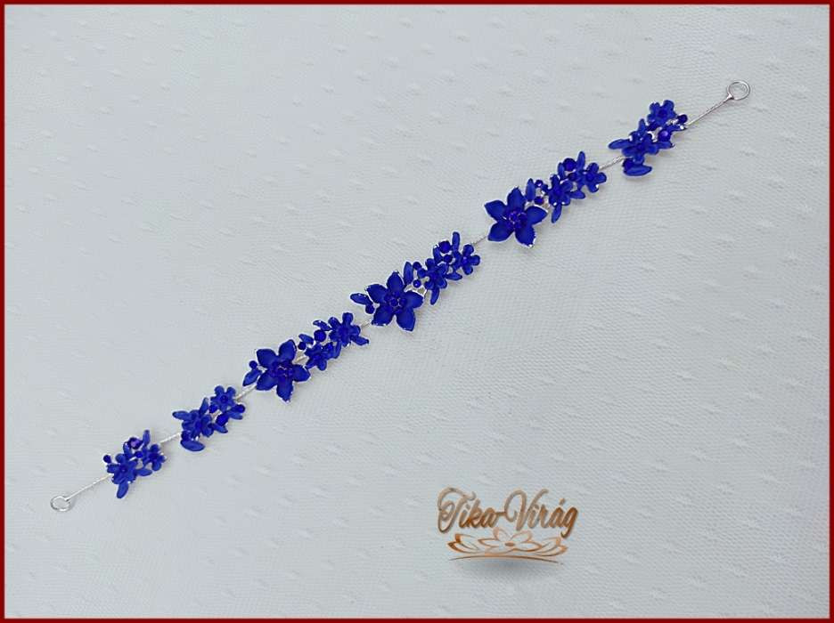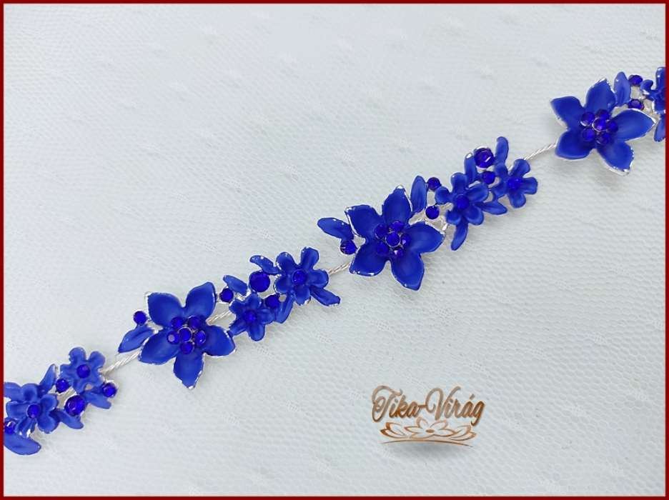 VIRÁGOKKAL DÍSZÍTETT STRASSZOS KIRÁLYKÉK HAJDÍSZ 28 CM X 2 CM CARCI-22612.K.