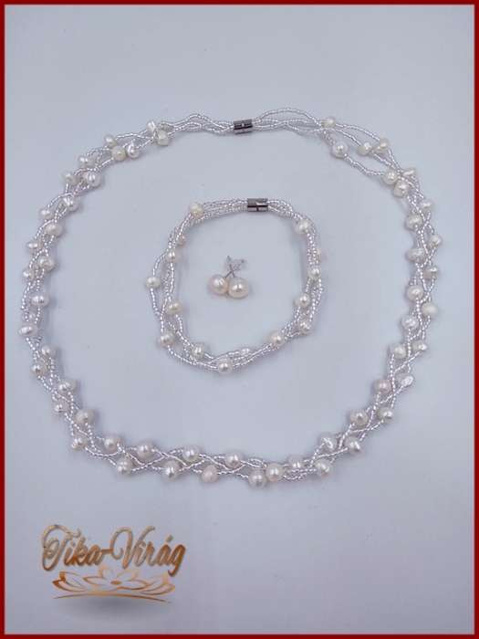 TENYÉSZTETT-GYÖNGY NYAKLÁNC SZETT EKRÜ
