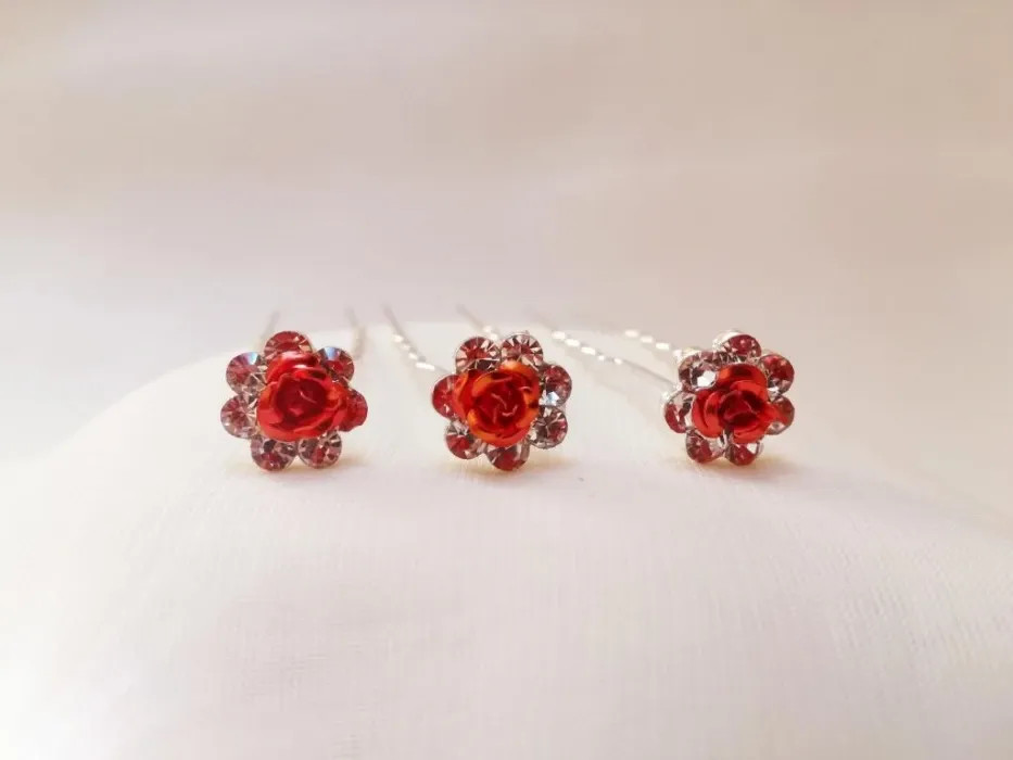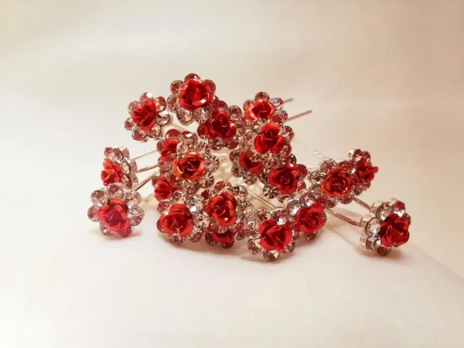 Strasszos kontytű piros E5682.