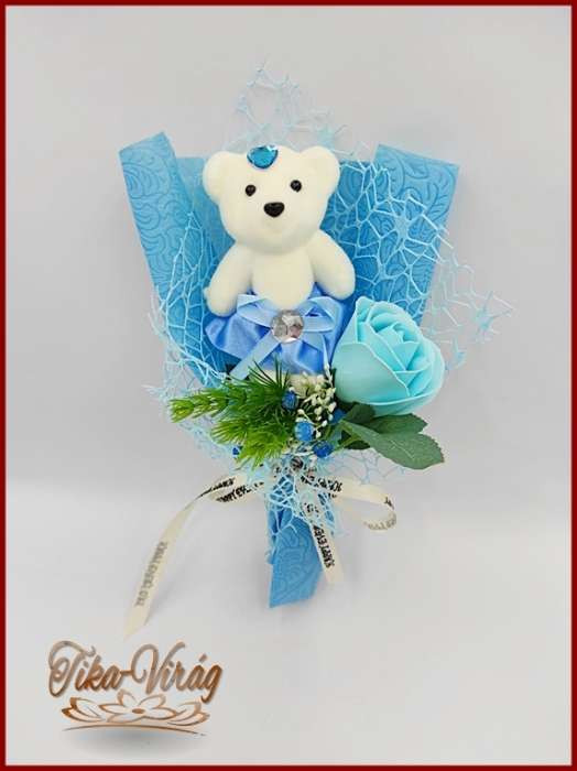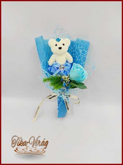 Türkiz szappan rózsa-világoskék macival 182753. Mérete: 25x15cm Ajánlom Nőnapra, de szép ajándék lehet ballagásra, születésnapra, névnapra, vagy bármely köszöntésre.