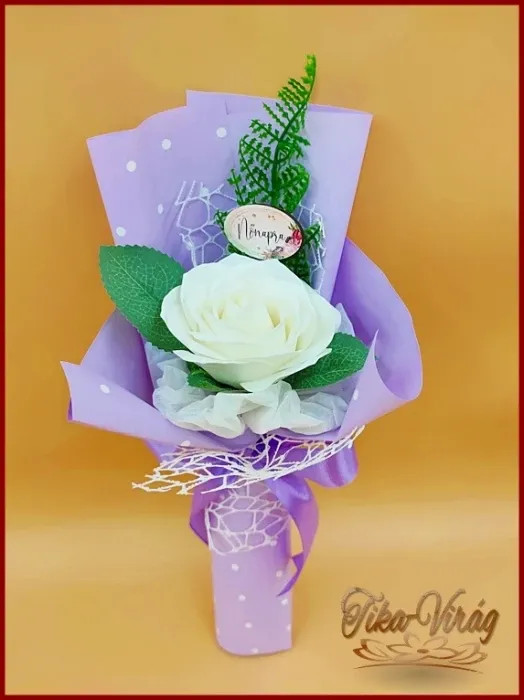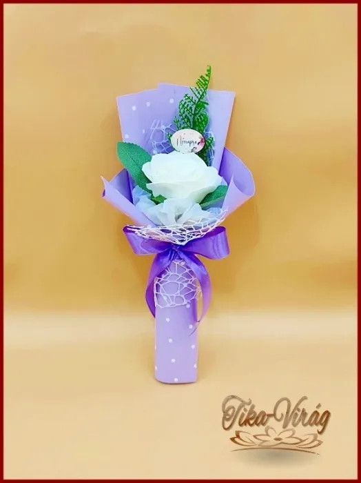Fehér nagy szappanrózsa táblácskával díszcsomagolásban 211601.